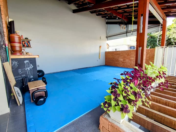 הציוד הבא זמין לאימונים: מזרן יוגה ומשקולות.