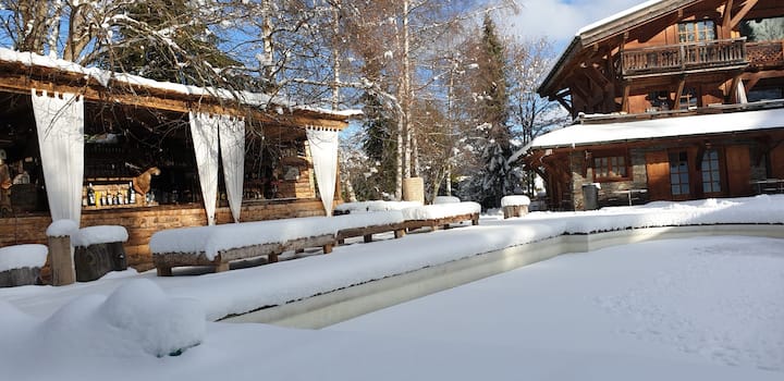 Megeve rochebrune log. 2ch indépendant piscinebbq