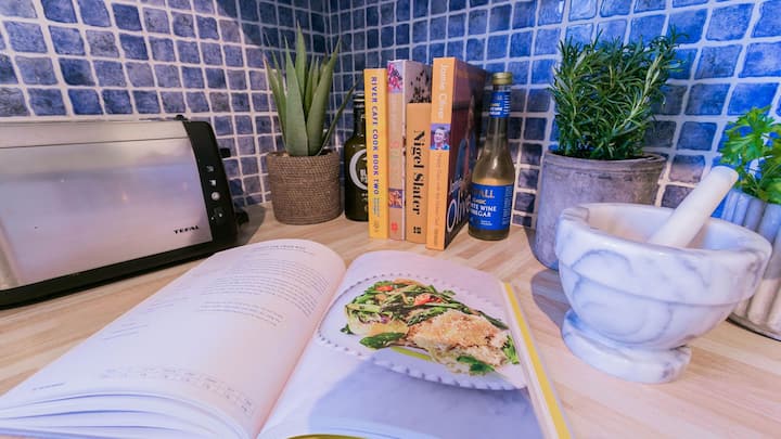תנור חשמלי, כיריים, מקפיא מקרר עם תא מקפיא קטן, מדיח כלים, מיקרוגל, קומקום, טוסטר, קפיטריה, מכונת כביסה/מייבש כביסה. מגהץ, קרש גיהוץ ומזגן בארון השירות.