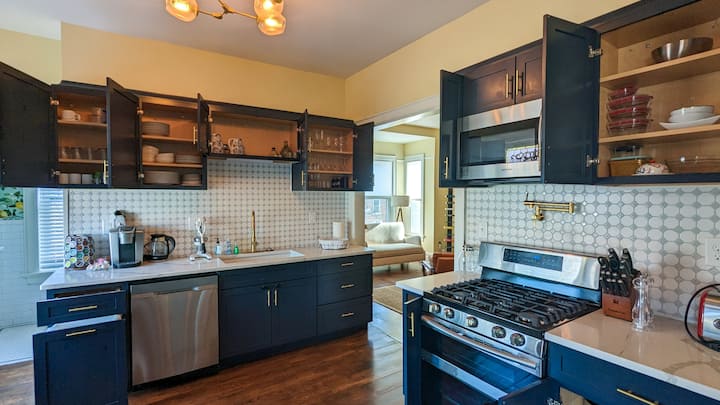 Chic Loft: 4BR Smart TVs - Games Work Space & W/D