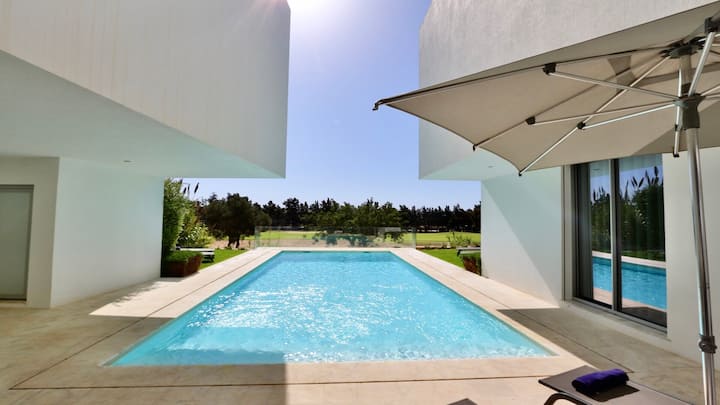 A Villa Bea com a sua arquitetura moderna de pura simplicidade, livre de imitações, incorpora um equilíbrio entre influências universais e tradição local. A forma volumétrica e a sua fachada minimalista forma uma sinergia com o ambiente natural do campo de golfe, com as paredes brancas bloqueando a luz natural para proporcionar aos seus hóspedes sombras no terreno.