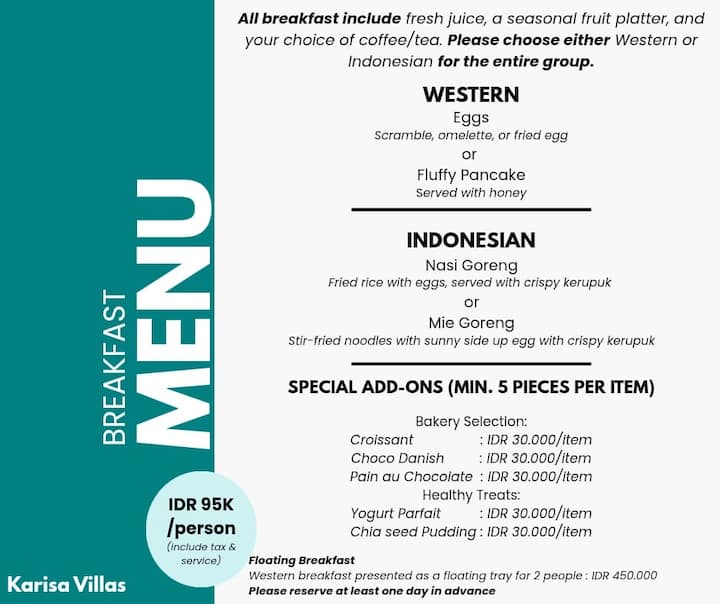 אנחנו צוות של 7 עם יותר מ -25 שנות ניסיון בתעשיית האירוח. צוות KARISA מחויב להפוך את הנסיעה שלכם לנפלאה. כל הווילות שלנו עוצבו וטיפלו בהן תוך התחשבות באורחים. אנחנו נסייע לכם לפני ההגעה ובמהלך השהייה עם כל צורך, החל משירותי ספא, הזמנות למסעדות, ארגון אירועים או טיולים ברחבי האי. השהייה הרגועה שלכם ללא דאגות היא השמחה שלנו!