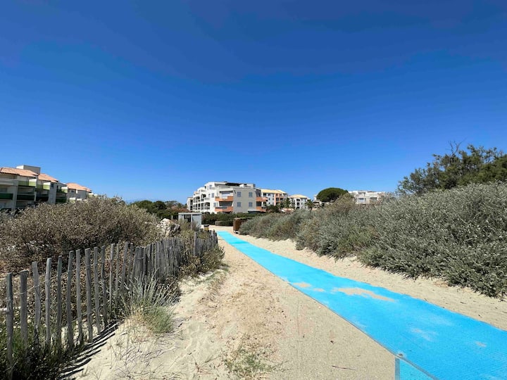 דירה עם נוף לים ובריכה, גישה ישירה לחוף הים.