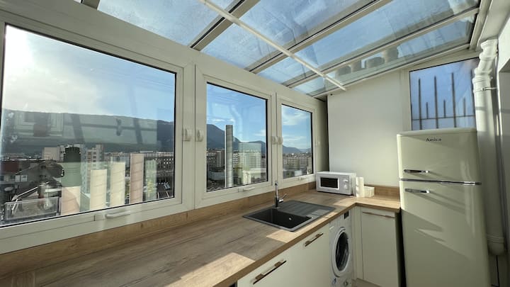מרכז גרנובל - קומה עליונה - דירת שני חדרים - נוף להרים