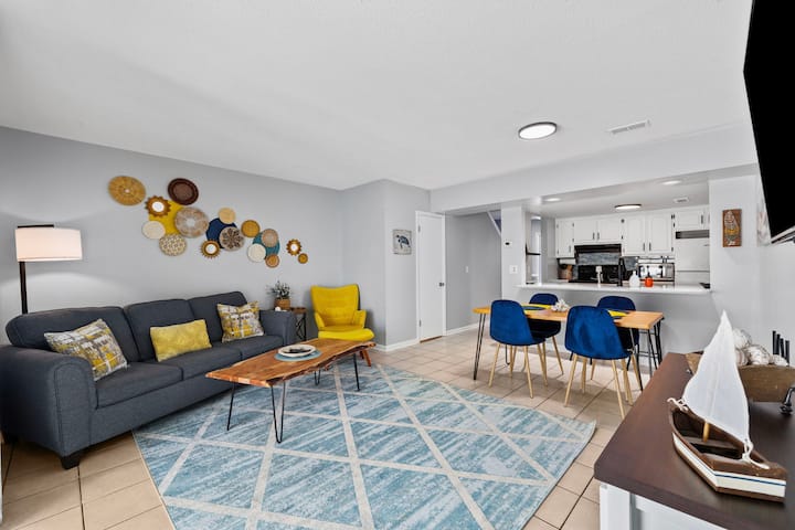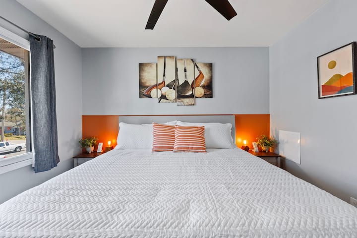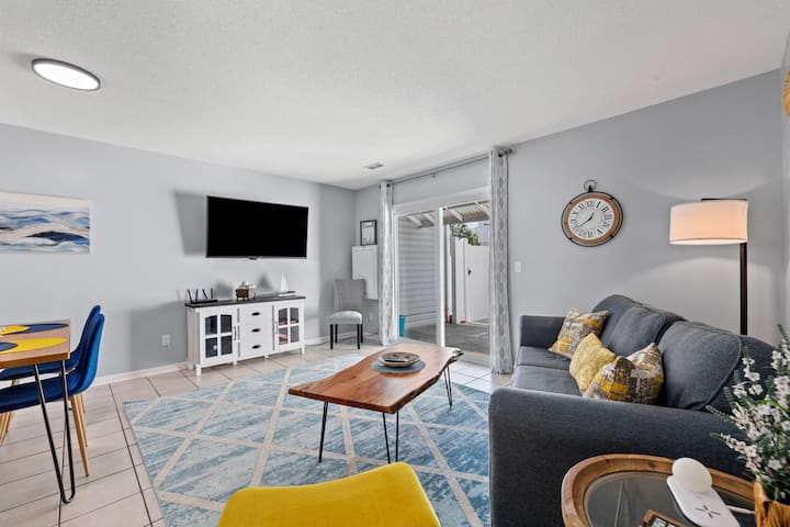 הליכה של 5 דקות לחוף הים | מיטת קינג סייז | פטיו | אינטרנט אלחוטי | W/D