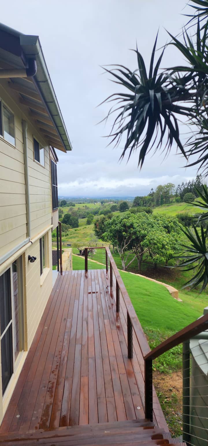 תמיד היו לנו חוות בעבר, אבל עכשיו אנחנו גרים על גוש אדמה של 13 דונם על רכס צ'טסוורת 'המשקיף על Gympie.