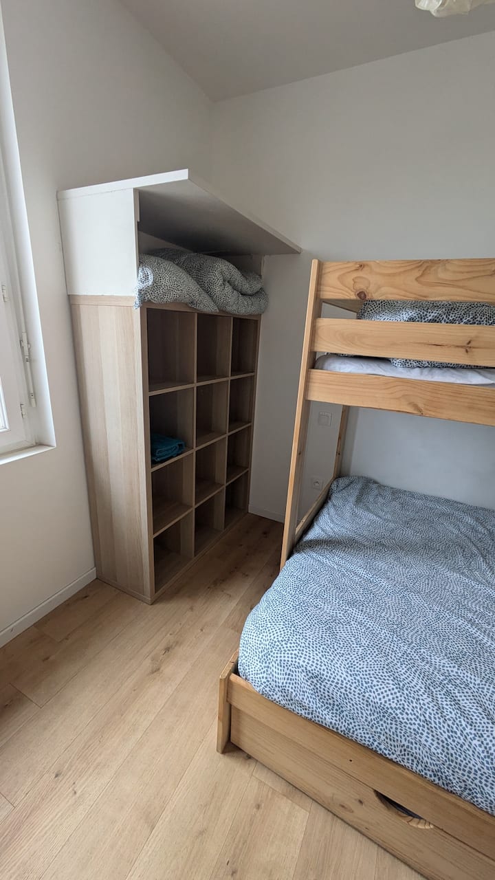 שלום, אני שמח לארח אתכם באחת הדירות שלי. הם מיועדים ל -4 אנשים חדר שינה אחד לשני מבוגרים ובסלון 2 מיטות נפרדות לילדים.