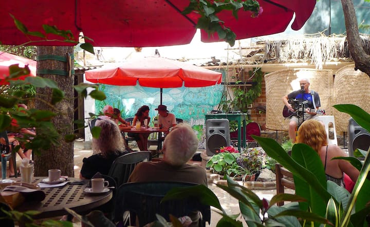 הגעתי למקסיקו עם המשפחה שלי על סירת מפרש מאנגליה ואני כאן כבר 25 שנה. בנינו בעצמנו את גן התמנון, הפועל במשך שנים רבות עסק להדפסת מסך כאן, ומכאן השם מ -8 הקרואלים להדפסת זרוע. עכשיו אני עוזר לצלות קפה ולאפות עבור בית הקפה כאן ואוסף את אמנות הויצ'ול לגלריה, ומארח שיעורי ריקוד והתעמלות ולעיתים קרובות מוזיקאים מהכפר לה קרוז.