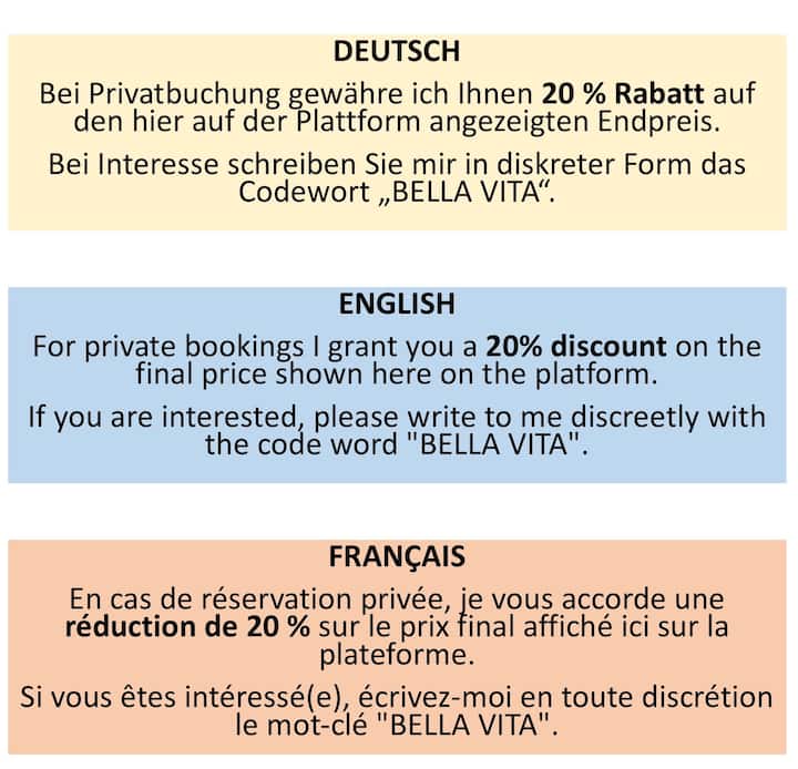 1) המחיר הוא תעריף קבוע ללילה לכל הבית הנייד (בין אם 2 או 6 אנשים). אין יותר עמלות אישיות כאן באתר. רק מס עירוני iHv. EUR 0.80 ללילה לאדם עדיין ישולם ישירות לאתר הקמפינג באתר. לכן זה אינו נכלל במחיר של Airbnb.