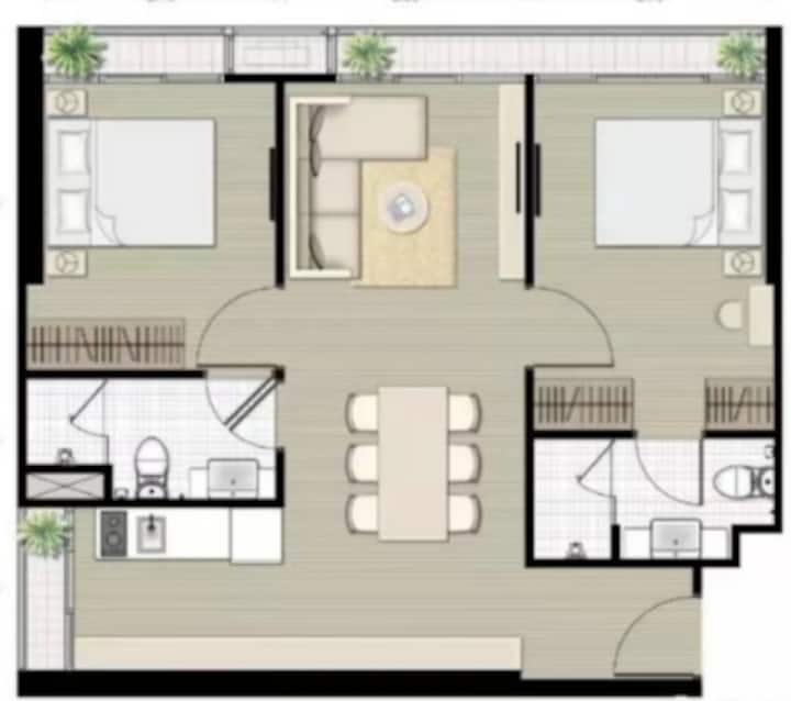 2 מיטות קינג/בריכת שמיים/חדר כושר/T21/Bts + Mrt @ Asok/Sukhumvit