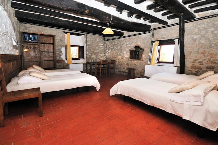 שבעה חדרים מרווחים מאוד עם חדר רחצה.