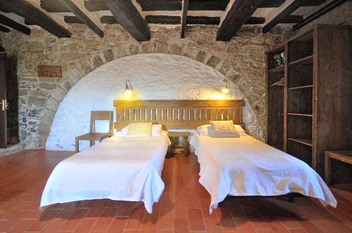 בית החווה מהמאה ה -13, הממוקם על צלע גבעה בסיירה דה רוקורבה, בגובה 200 מטר מעל פני הים, הבית נהנה מנוף נפלא מעל פלה דה ל'אסטני אל החוף מצד אחד והרי הפירנאים מצד שני. 5 ק"מ מאגם בניולס ו -13 ק"מ מהעיר ז'ירונה.