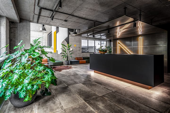 רשת Wi-Fi מהירה של 282 מגה ביט לשנייה, עם פינת עבודה ייעודית באזור משותף.