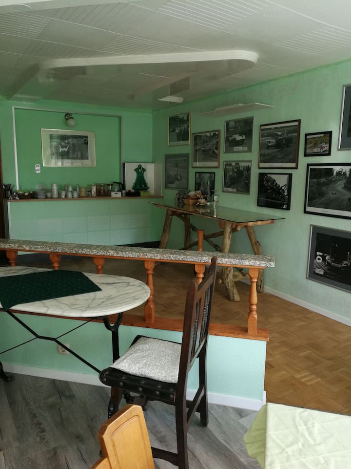 אני מצפה לכל אורח ויהיה לי חוויה עם כולם. כל מקומות הלינה שלי, למעט הדירה הירוקה והדירה ליד Nordschleife, נמצאים בבתים היסטוריים המפורטים. אין לצפות כאן לסטנדרטים הנוחיות של היום, אלא לחוויה של מצב החיים של דורות קודמים ואינדיבידואליות מלאה.