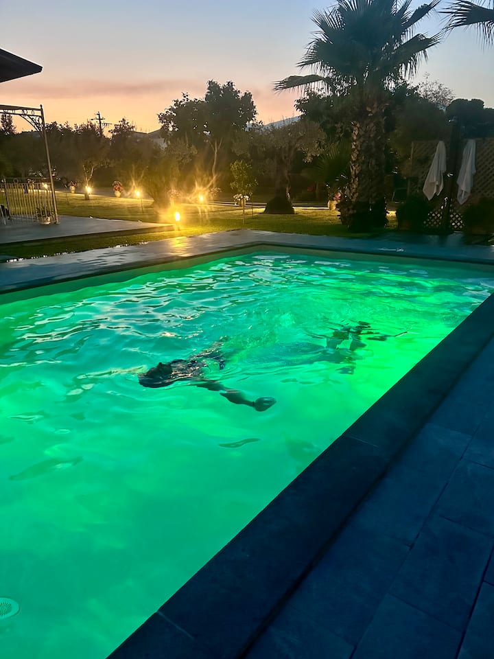 לב הווילה הוא בריכת המלח, המיועדת לשימושם הבלעדי של האורחים. כאן תוכלו להירגע בשמש, לשחות בשלווה או לשתות אפריטיף בשקיעה. אזור הבריכה מוקף בצמחייה ומיועד להציע פרטיות ונוחות מרבית.