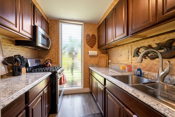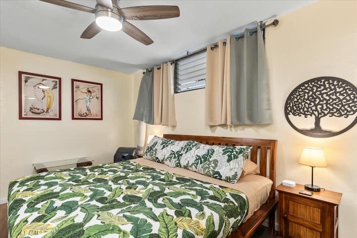 הלב של Kihei! מיטת קינג סייז! 5 דקות הליכה לחוף הים!