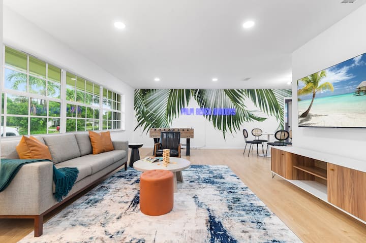 נכס יוקרתי בפאלם ביץ' | 5 חדרי שינה, בריכה, אולם משחקים | 18 מיטות