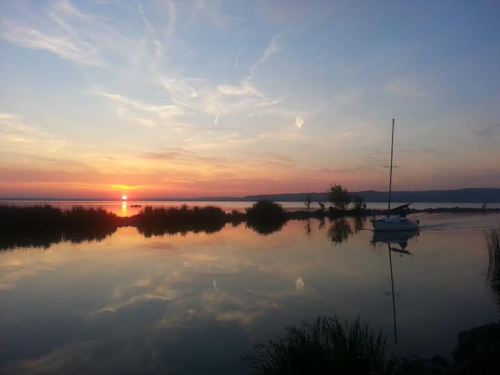 אנחנו גרים בבודפשט עם בת הזוג והבת שלנו. לא מזמן רכשנו את בית הנופש, ובחצי ממנו אנחנו בדרך כלל מבלים כמה שיותר זמן בעצמנו בקיץ ומשכירים את החצי השני. אנחנו מבלים את זמננו הפנוי במים, בשחייה, גלישה, שייט:)