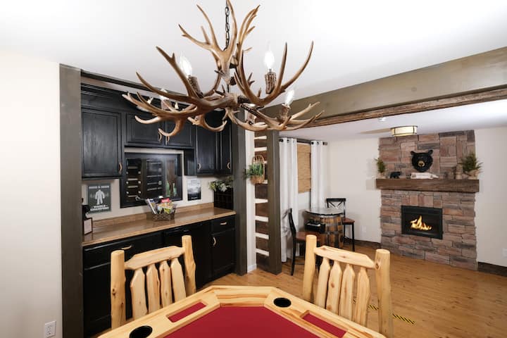 לכו דרך חדר המשחקים לספה עור נוחה בלובי, שהיא מושלמת לנמנם או לקרוא מגזין. מעבר לכך יש סלון גדול עם טלוויזיה עם מסך שטוח המורכבת מעל קמין, ספה עור ענקית עם מקום לכל המשפחה, ומדפי ספרים מובנים מרהיבים מלאים בספרים ונגיעות יפות. מאחורי הספה יש שולחן אוכל ומטבח מפואר, המצויד במלואו כדי שתוכלו להכין את הארוחות האהובות על כולם (או סתם כ*ס קפה ממש טובה)! יש גם מכונת כביסה ומייבש בארון ליד המטבח. עלו למעלה לחדר השינה הראשי עם מיטת קינג סייז, טלוויזיה וחדר רחצה חלומי לחלוטין עם מקלחון!
