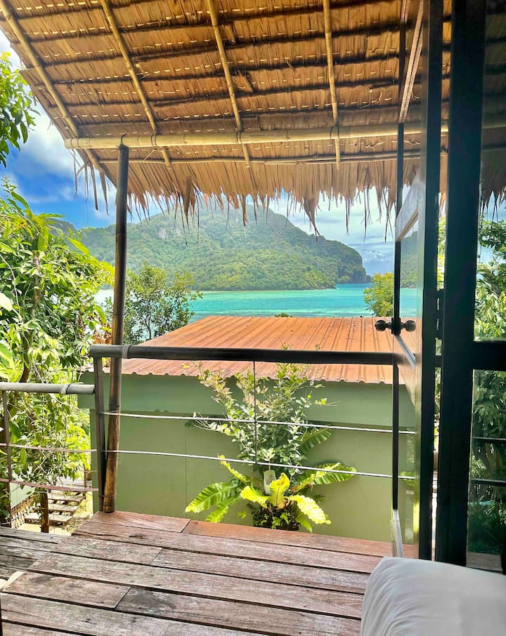 בונגלו עם מיטת תאומים ונוף לים בקו פיפי
