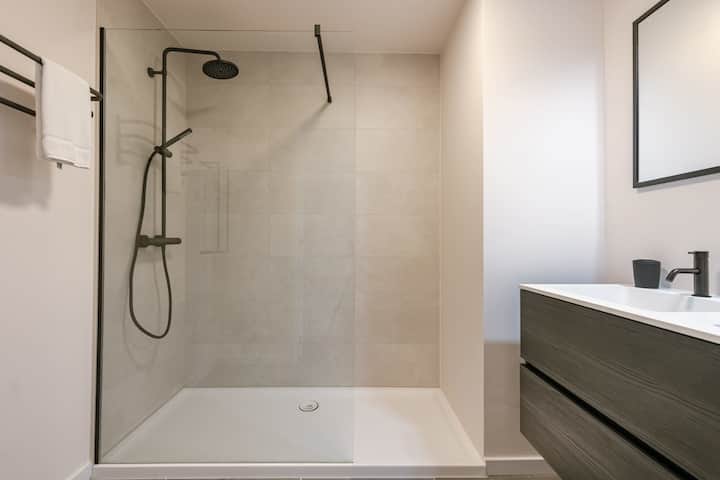 חדר הרחצה המודרני כולל מקלחת גשם, שבה אפשר להירגע אחרי יום של הרפתקאות בחוף הבלגי. הדירה כוללת שני חדרי שינה: אחד עם מיטה זוגית נוחה והשני עם שלוש מיטות יחיד, מה שהופך אותו לאידיאלי לזוגות, משפחות ומבוגרים צעירים. המטבח מאובזר במלואו, ומאפשר לכם להכין בקלות ארוחות וליהנות ממנות טעימות במהלך השהייה.