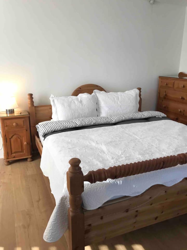 חדר שינה עם מיטת סופר קינג-סייז וחניה