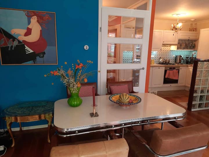 אמסטרדם, שנולדה וגדלה בכרתים ;-) וצבעונית כמו הדירה שלי. במהלך החופשות שלי במדינות ובערים חדשות, אני נהנה לפגוש את הדיירים בנוסף לטבע. אפשר לעשות את זה בצורה מושלמת עם Airbnb. לכן אני אוהב להציע את הדירה שלי.