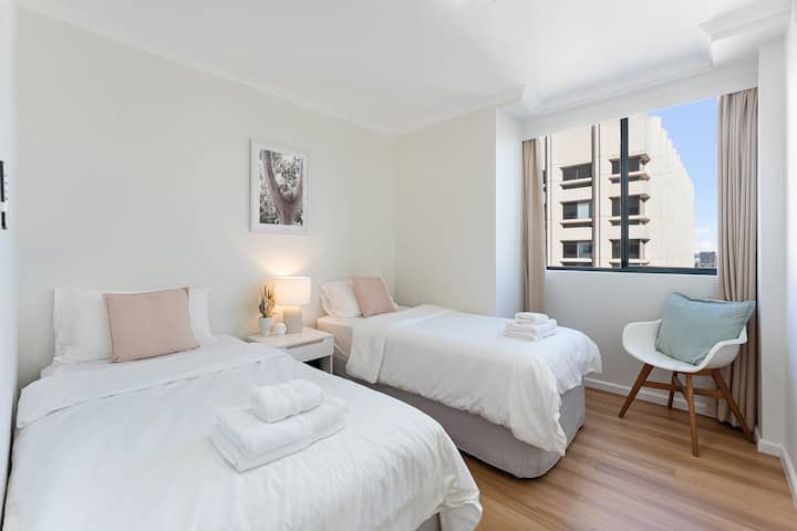 Luxe 3BR CBD Skyhome: חניה חינם, 2 מיטות קינג