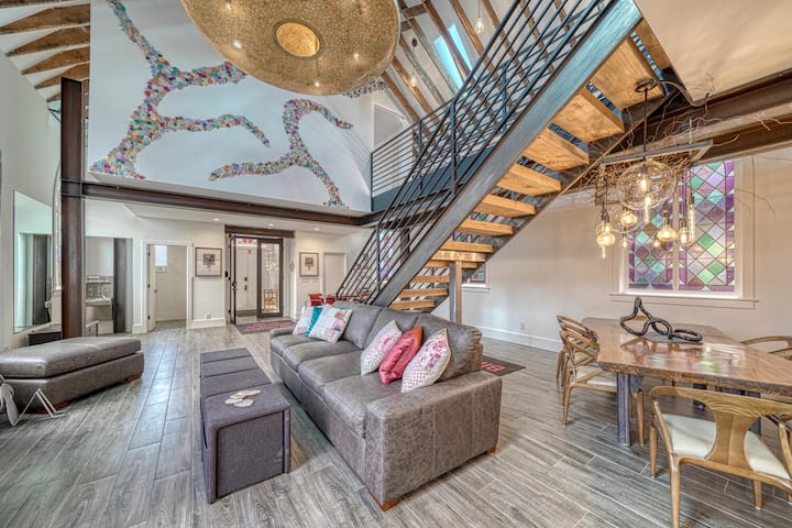 כנסייה היסטורית ורודה במרכז לידוויל, מטען לרכב חשמלי