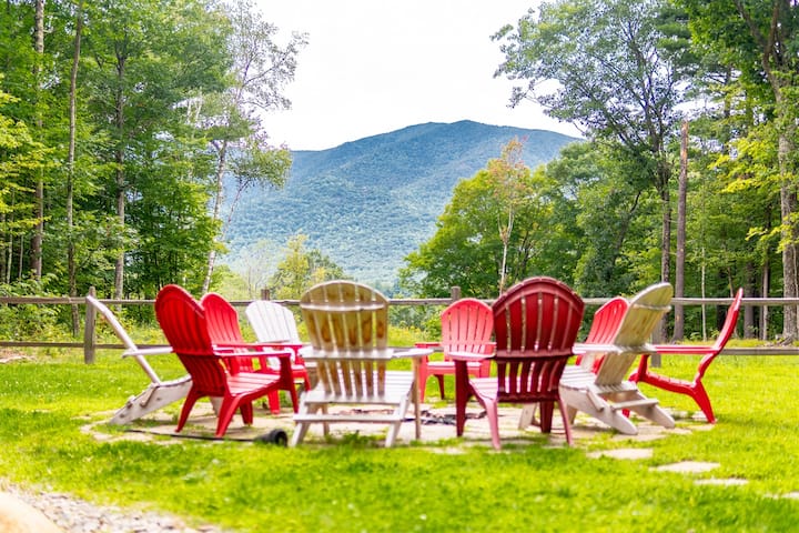 • הכנסו לחלל מגורים חם ופתוח מלא באור טבעי, עיצוב של Adirondack ונופים מרהיבים של הר Whiteface.