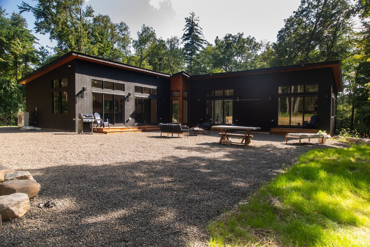 בית עץ ייחודי על גדת נהר