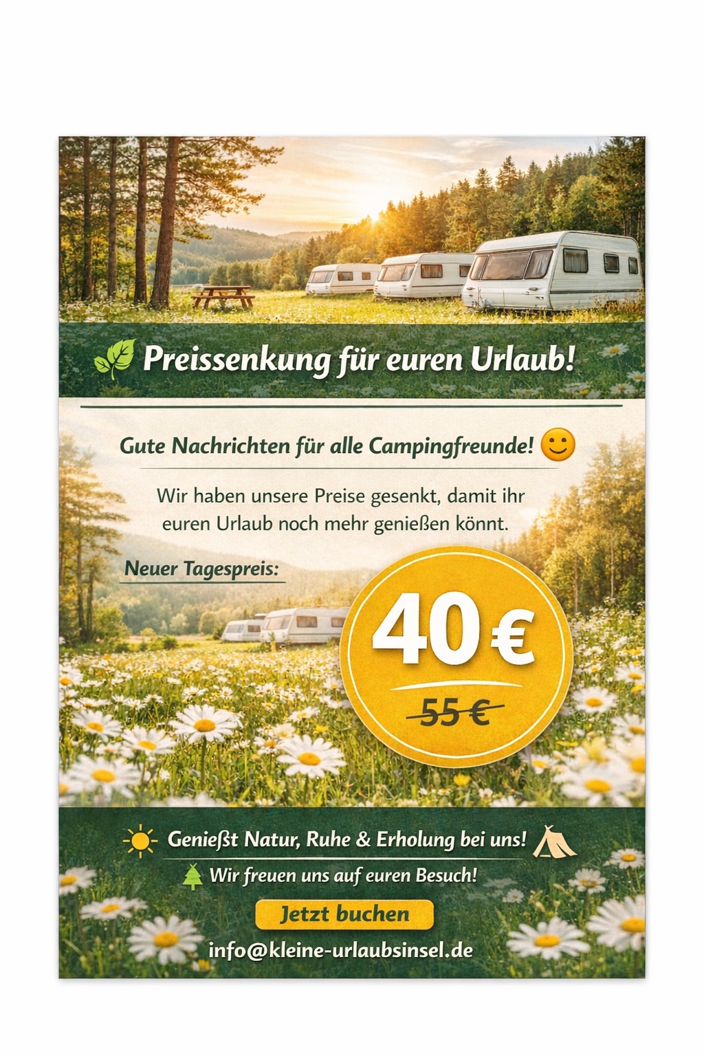 הוא נהג במשך 13 שנים ועכשיו הקרוואן מוכן עבורכם. ממש על שביל האופניים של ורלטל. עם מרפסת, ריהוט נעים ומוקף בצמחייה. הוא עומד באחו שלי, שמשמש גם את קרוואנים מדי פעם. האחו נמצאת באמצע הכפר ברחוב. זה מה שצריך לדעת. לא תמיד יש לכם שלווה אידילית. יאיי... פשוט תטפלו בזה שוב. חנות הקצבים של החווה עם מאפים מהקואופרטיב החקלאי ממש ליד מקום החניה פתוחה שוב.