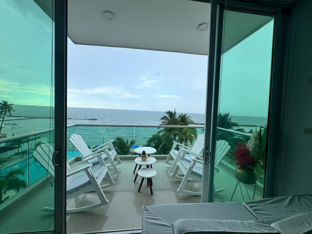 Es un apartamento con excelente vista al mar, ambiente familiar El edificio cuenta con piscina y jacuzzi Es un edificio residencial con servicio de portería y vigilancia durante las 24 horas. Cuenta con un ascensor y parqueadero. A 2 kms del edificio encontrara supermercados como El Oriente, Olímpica, D1 y Ara. El costo incluye una persona que presta apoyo de aseo, y cocina con un horario de 8am a 4pm. Capacidad máxima de Huéspedes 8 personas ( incluyendo niños)
