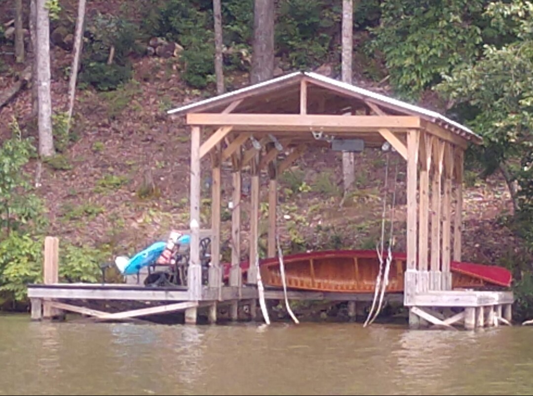בקתה על אגם, רמפת סירה פרטית ורציף גדול